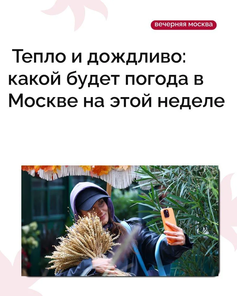 🍂 На этой неделе в столице будет тепло, но возможны кратковременные дожди, рассказал синоптик прогностического центра «Метео» Александр Ильин