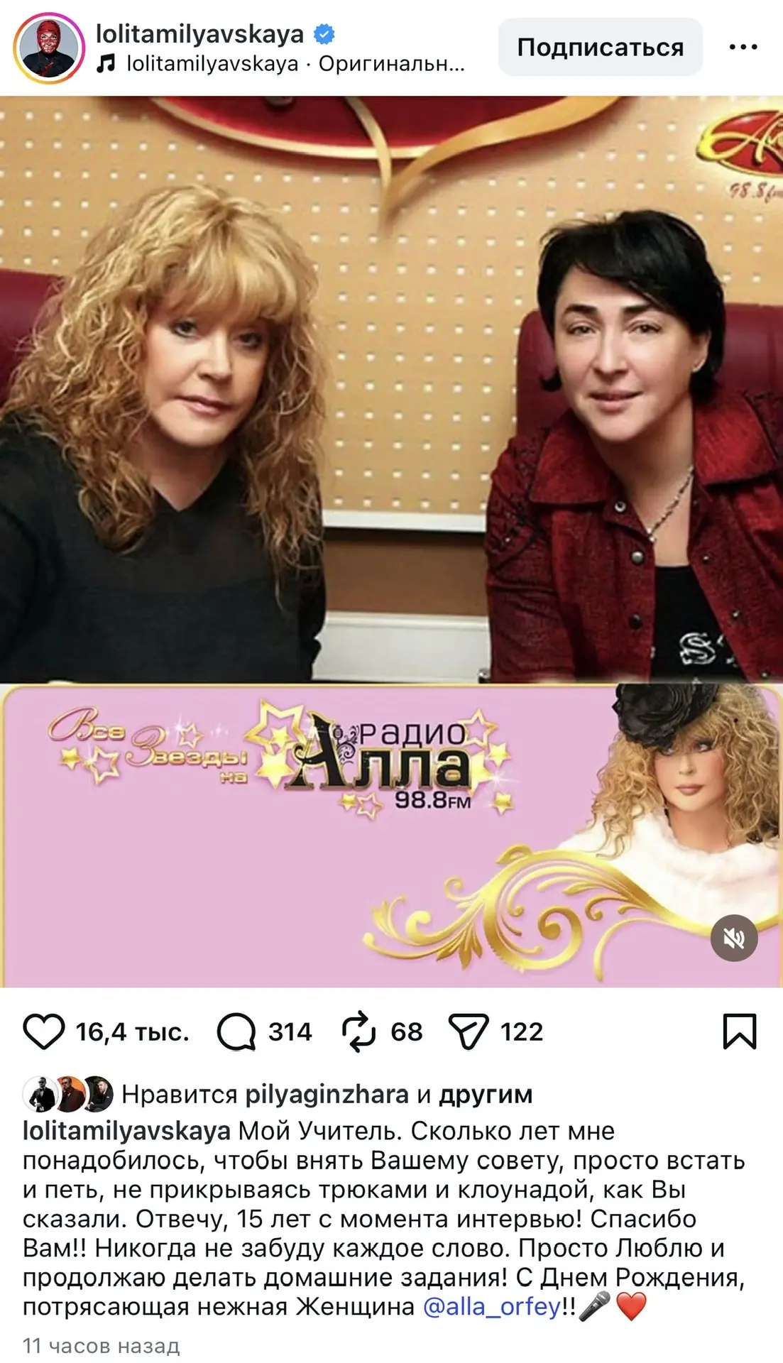Ещё одна патриотка Лолита поздравила с днём рождения Аллу Пугачеву