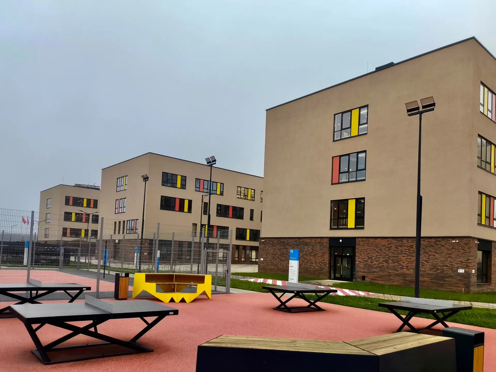 На территории специалисты провели масштабное озеленение на площади 11 тыс. кв. м. Они высадили 85 деревьев и свыше 3,6 тысячи кустарников. На участке разместили детские и спортивные зоны для младших и старших классов, площадку для воркаута, зоны для прыжков в длину и начальной военной подготовки. Построили большое искусственное полупрофессиональное футбольное поле, баскетбольную площадку и установили столы для настольного тенниса. При успешном прохождении всех проверок школа примет первых учеников в сентябре 2026 года.