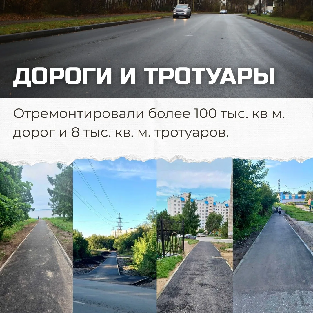 — Отремонтировали более 100 тыс. кв м. дорог и 8 тыс. кв. м. тротуаров, включая улицы частного сектора;