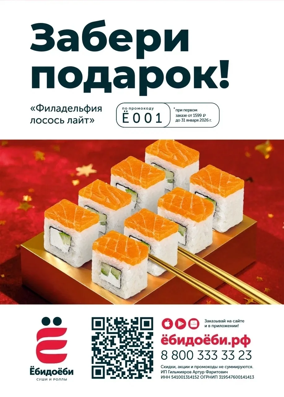 🎁 ДАРИМ ролл ФИЛАДЕЛЬФИЯ ЛАЙТ в честь открытия доставки на ОбьГэс!🎁