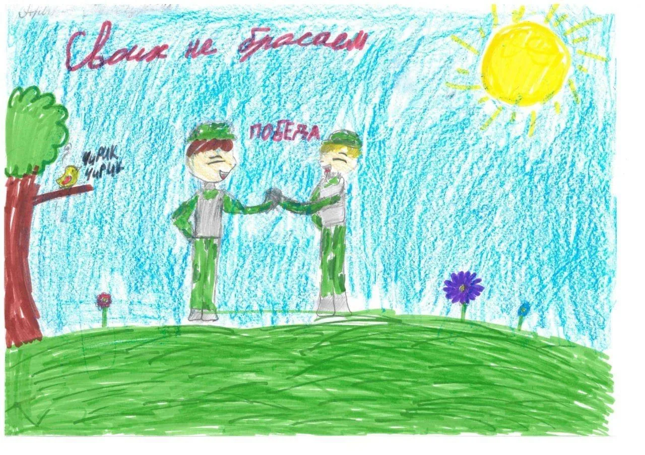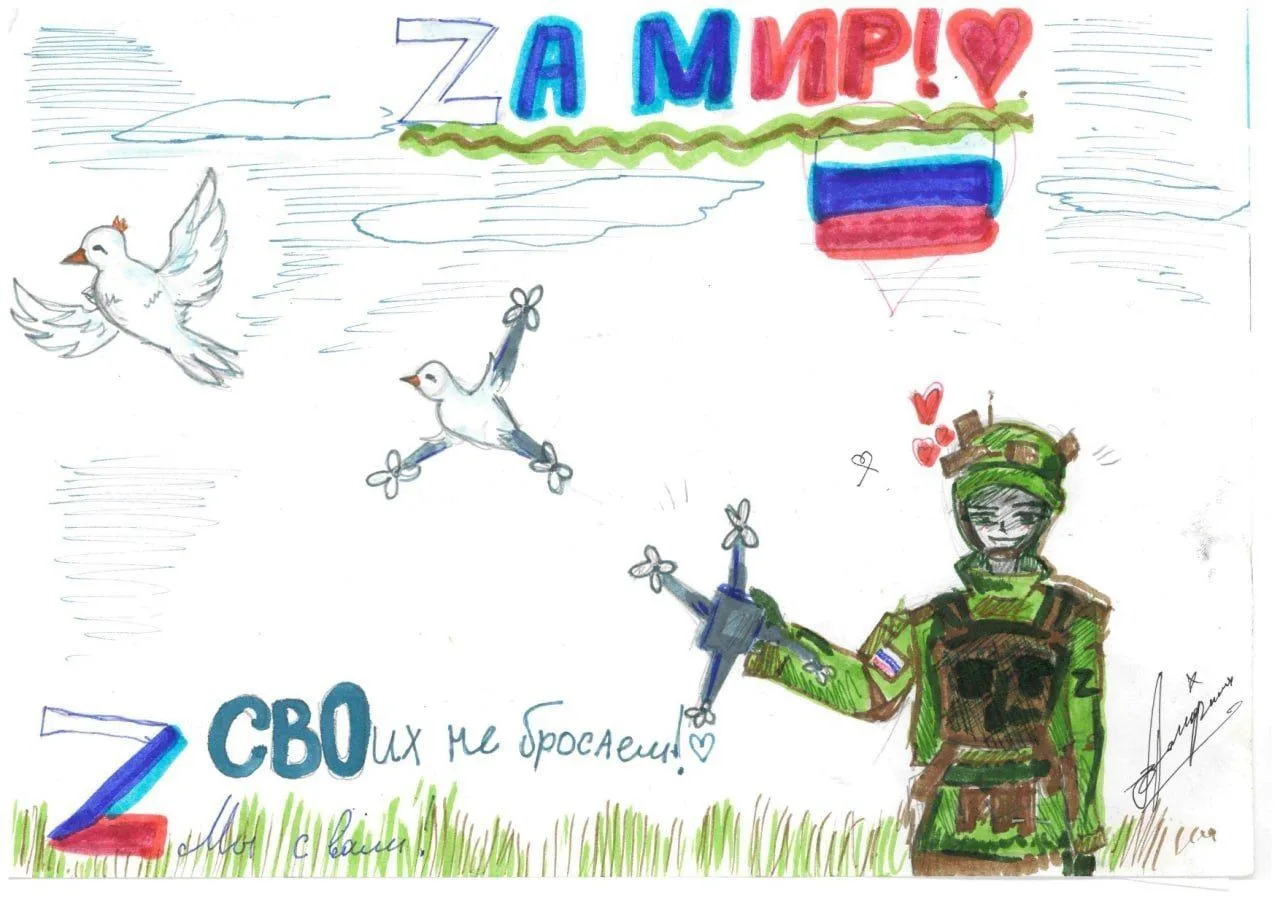 На фотографиях представлены рисунки детей сотрудников на тему "СВОих не бросаем"