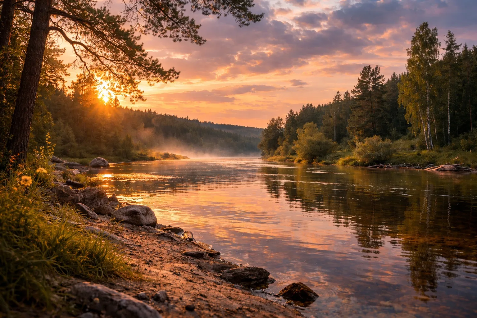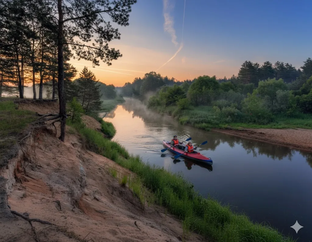 Сосновые боры, песчаные косы, чистая вода — идеально для спокойного водного отдыха.