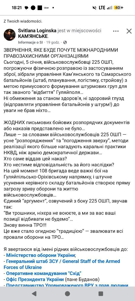 🔸Ну вот и с мест подъехало подтверждение тому, о чем мы тут пишем: командование 225 ошп находится в сговоре с командованием 108 бригады, откуда насильно вывозится личный состав. Соответственно, ни о каких "занятиях", как говорит дипстейт, речи не идет — людей просто транспортируют на убой.