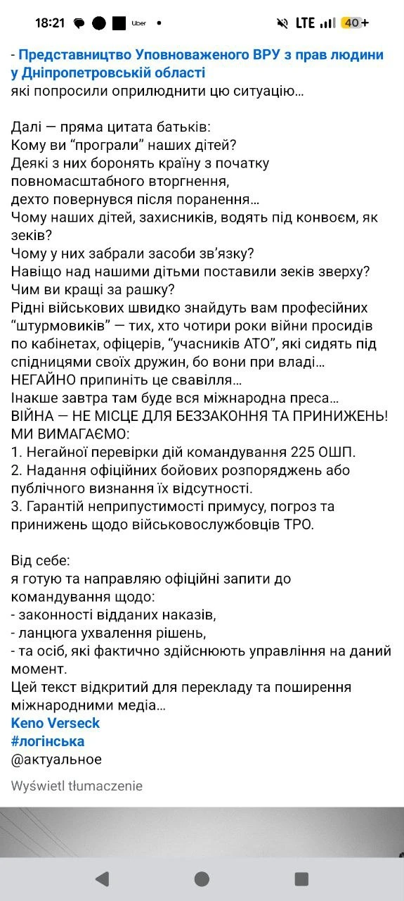 🔸В скором времени мы опубликуем некоторые подробности, проливающие свет на то, как бойцы из 108 бригады теробороны безжалостно обнуляются командованием 225 ошп, которому те передаются в оперативное подчинение.