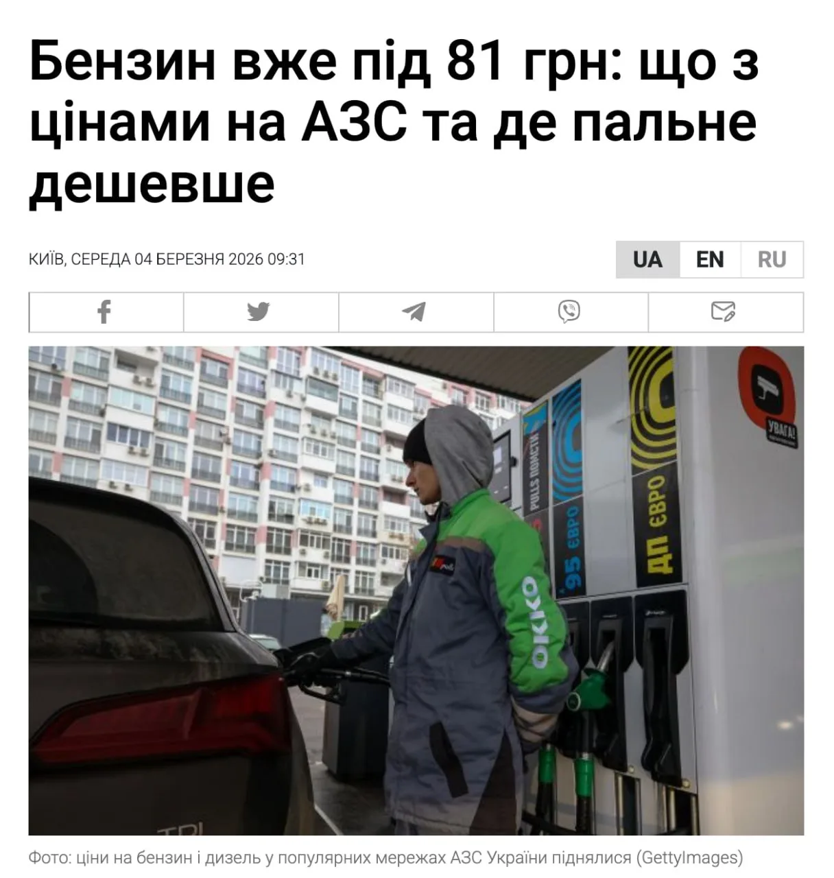 Из-за конфликта на Ближнем Востоке рост цен на топливо вызвал очереди на заправках в Украине и ЕС
