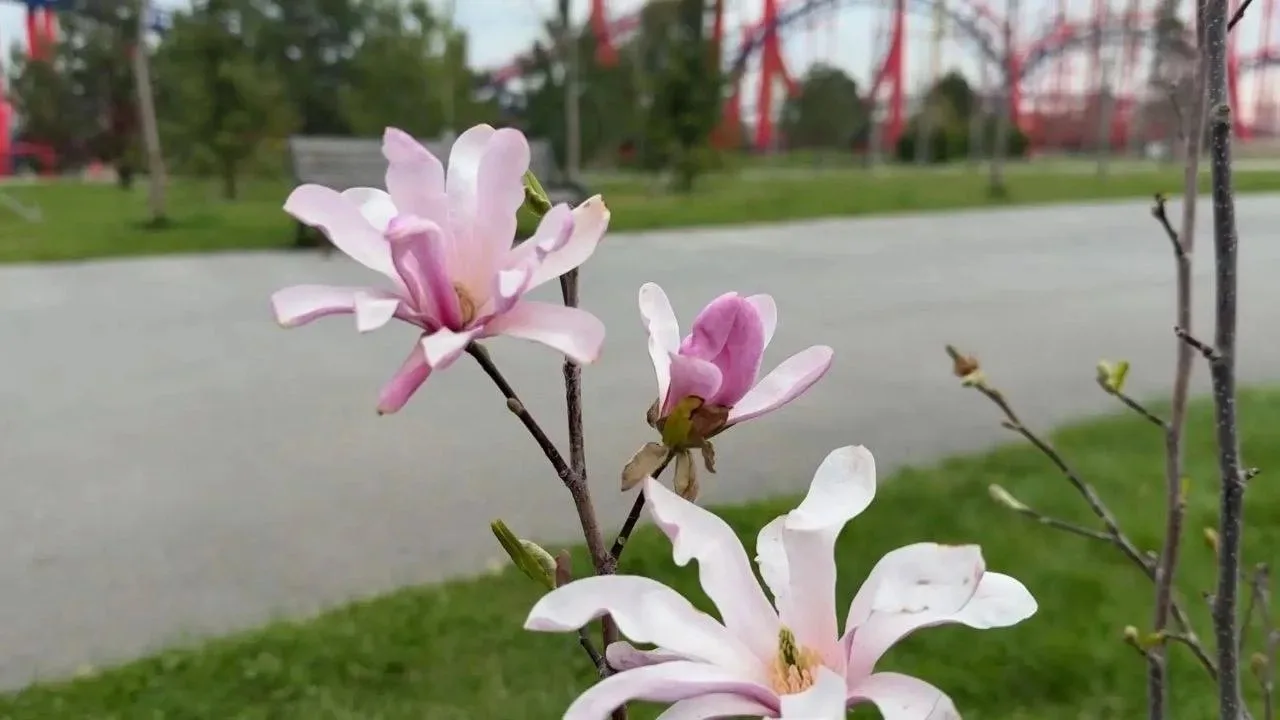 В ЦПКиО распустились розовые и белые бутоны — «королева весны» вновь украсила город.