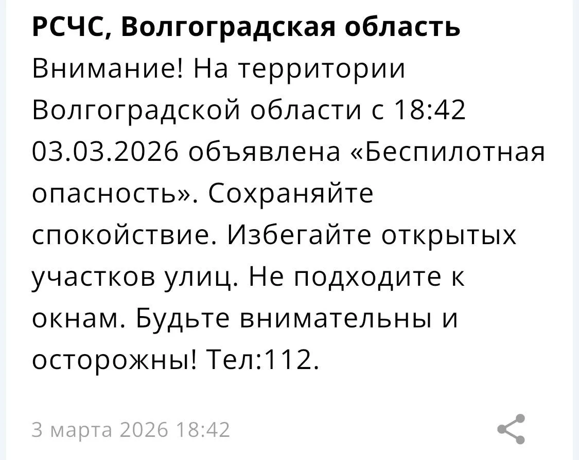 ❗️Опасность БПЛА объявили в Волгоградской области. Будьте осторожны.