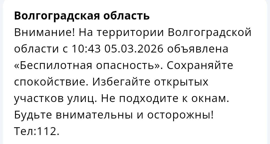 Волгоградская область - Опасность по БПЛА