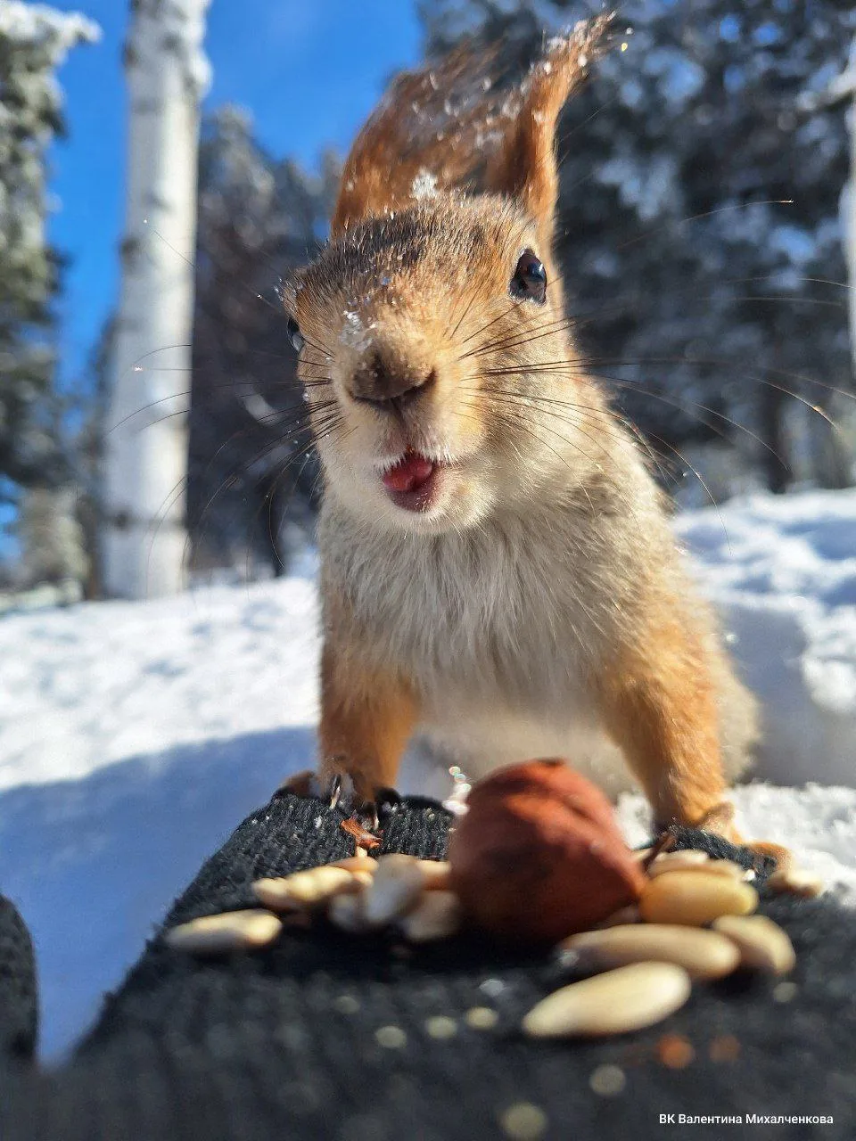 «Перед вылетом Сахалин наградил меня такой вот крабалкой — клевал один за одним. Взяли только мальчиков, самочек отпускали. Это была трудовая рыбалка: два раза провалилась, руки замёрзли. Краба не так просто поймать — он цепляется за булавку. А когда видит свет, наживку отпускает. Тут ещё надо постараться вытащить — краб очень осторожный. Но главное, что отловилась. Сахалин, я люблю тебя!»