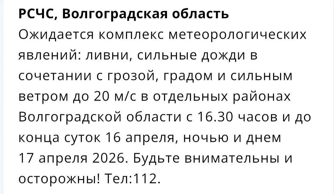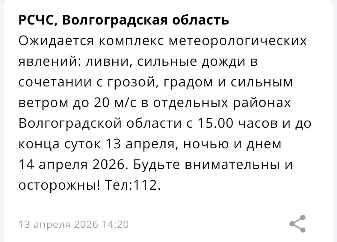 ⚠ Ливни с грозой и градом надвигаются на Волгоградскую область
