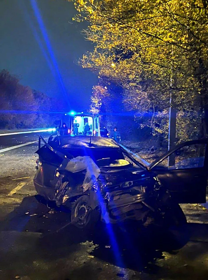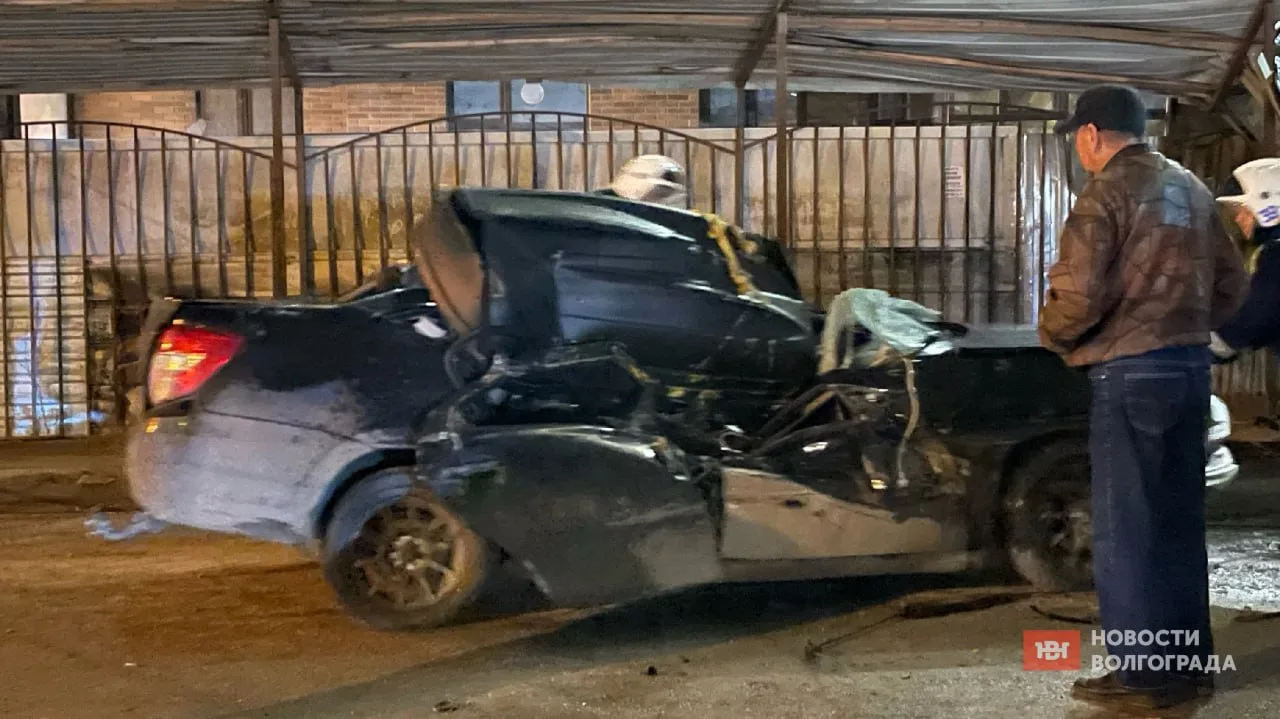 В Волжском легковушка влетела в дерево, машину нереально перекарежило, водителя зажало в машине.
