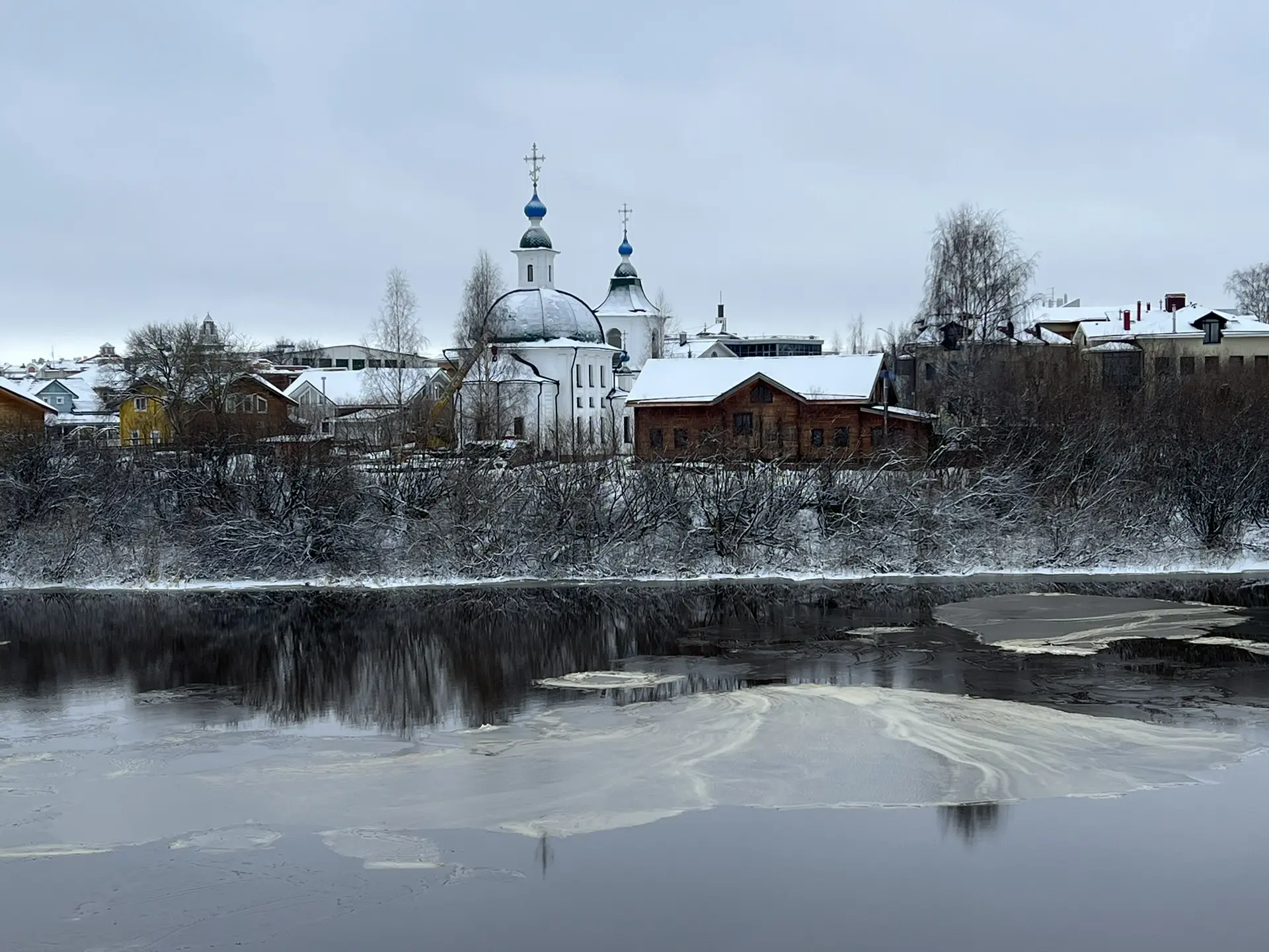 А на Вологде-реке - снежура! Знаете, что такое? Снежура — это скопление снега, выпавшего на воду, которое пропитывается водой и превращается в кашеобразную массу. Ну, а как выглядит, вы теперь знаете.