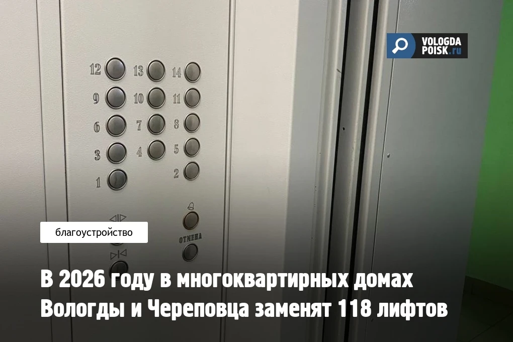 В 2026 году в жилых домах Вологды и Череповца обновят 118 лифтов. Работы будут выполнены за счёт средств, которые жители перечисляют на капитальный ремонт, дополнительных расходов из бюджета не потребуется.