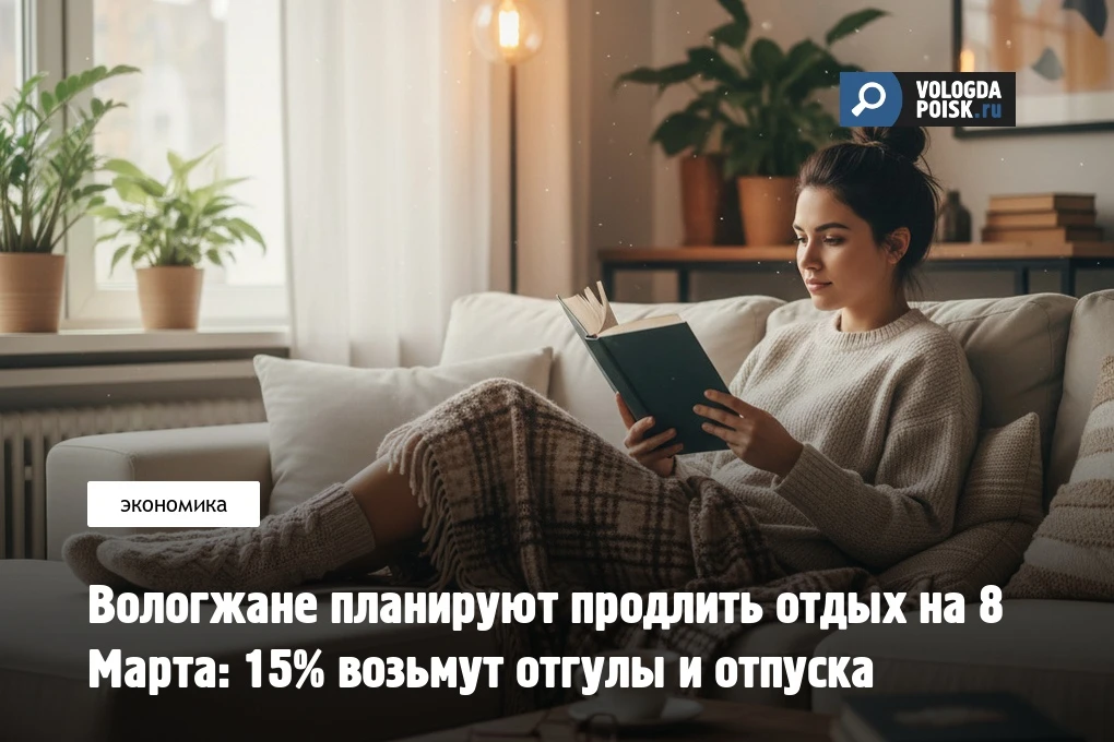 👍Согласно опросу сервиса SuperJob, 15% экономически активных жителей Вологды собираются продлить праздничные выходные, приуроченные к Международному женскому дню. В 2026 году 8 Марта выпадает на воскресенье, а выходной переносится на понедельник, 9 марта – это создаёт удобную возможность для дополнительного отдыха.