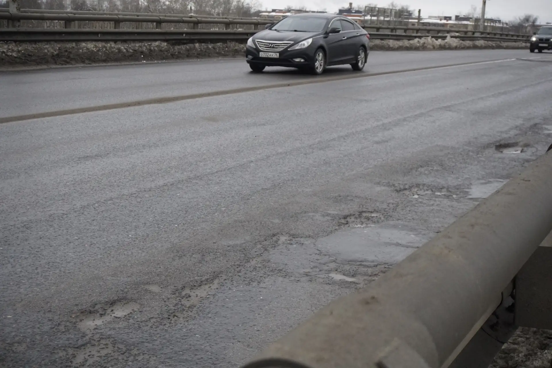 Сегодня ночью дорожники выходят на Пошехонский мост, Ленинградский мост и мост 800-летия, чтобы ликвидировать ямы литым асфальтом — тем самым методом, который в народе окрестили «лёпешками». Накануне такие же работы провели на Белозерском шоссе.