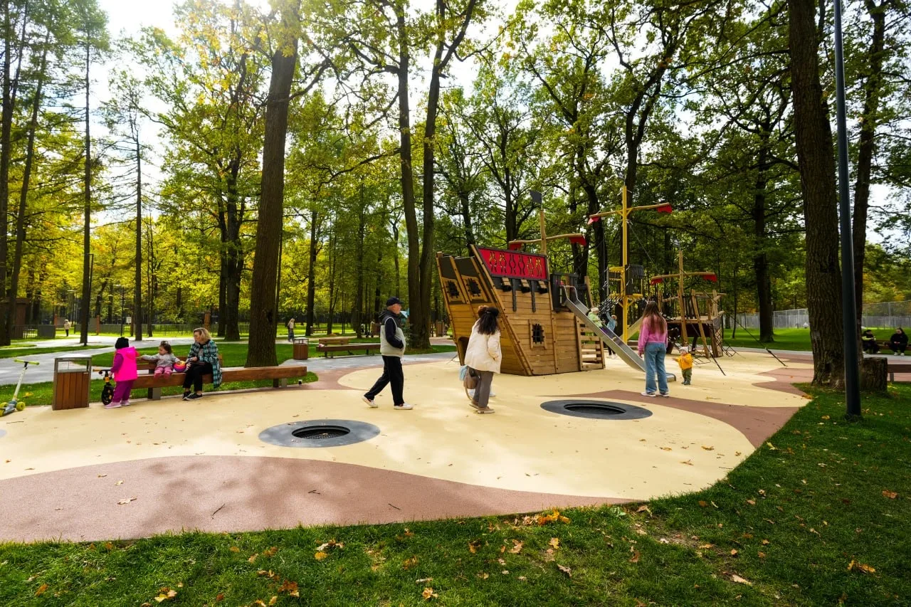 Очистили территорию, проложили дорожки, установили освещение и видеонаблюдение, детские и спортивные площадки. Построили сцену, кафе, пункт проката, зону для ворк-аута, место для отдыха у пруда, площадки для праздников и пикников.