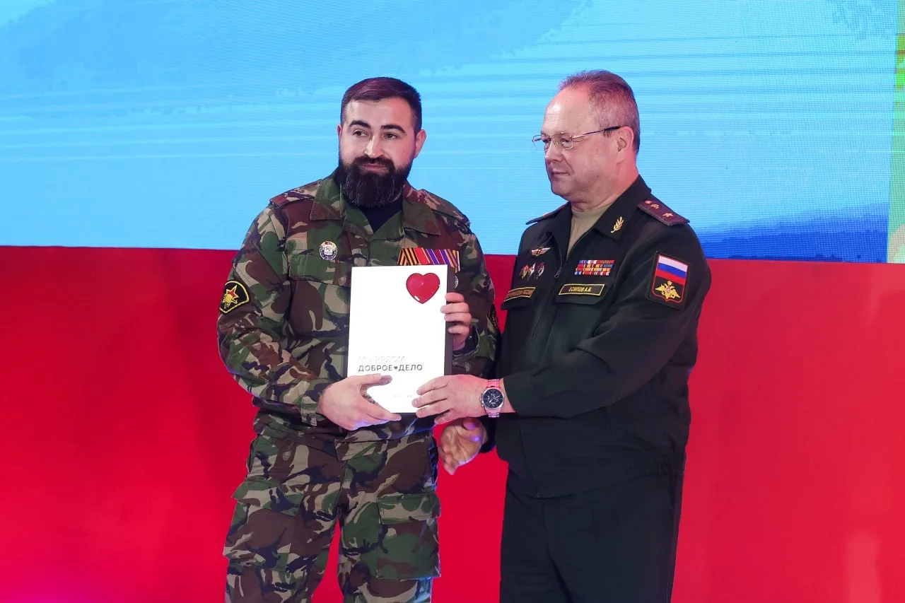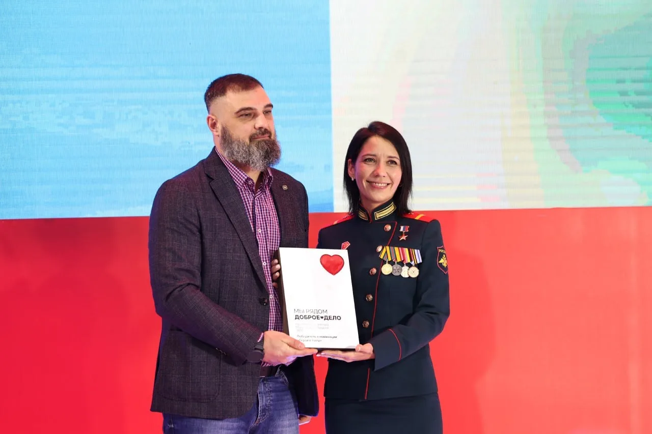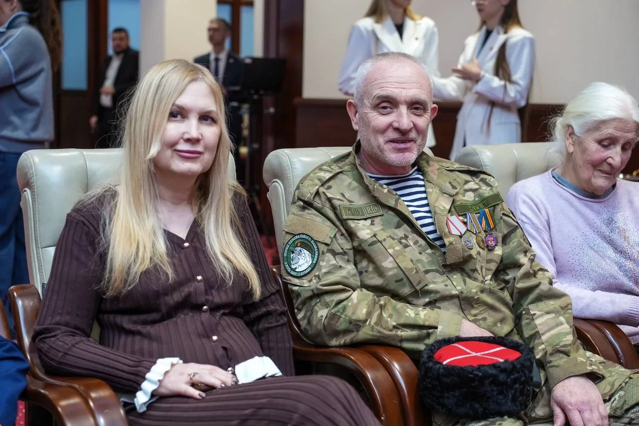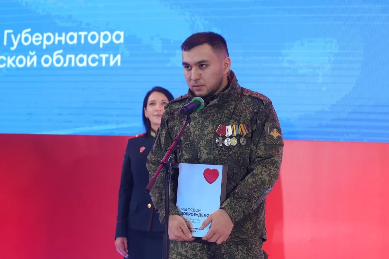 Начальник Центрального военного госпиталя им. А.А. Вишневского, Заслуженный врач России, генерал-майор Александр Есипов передал награду Рамилю Мустафину. Рамиль — кавалер трех Орденов Мужества, офицер-подводник Северного флота, ветеран Сирии и СВО. После тяжелейшего ранения и ампутации обеих ног прошел полтора года реабилитации. В госпитале Вишневского к нему приходили волонтеры — и одна из них, Кристина, стала для него опорой, вдохновением и невестой. 24 декабря пара сыграет свадьбу!