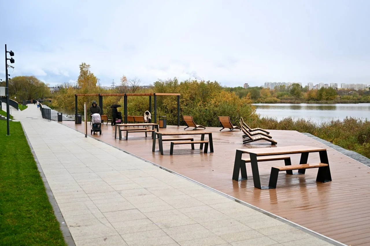 В парке есть детские и спортивные площадки, смотровые с панорамными видами на озеро, зоны для пикника и отдыха, амфитеатры, деревянные настилы и шезлонги.