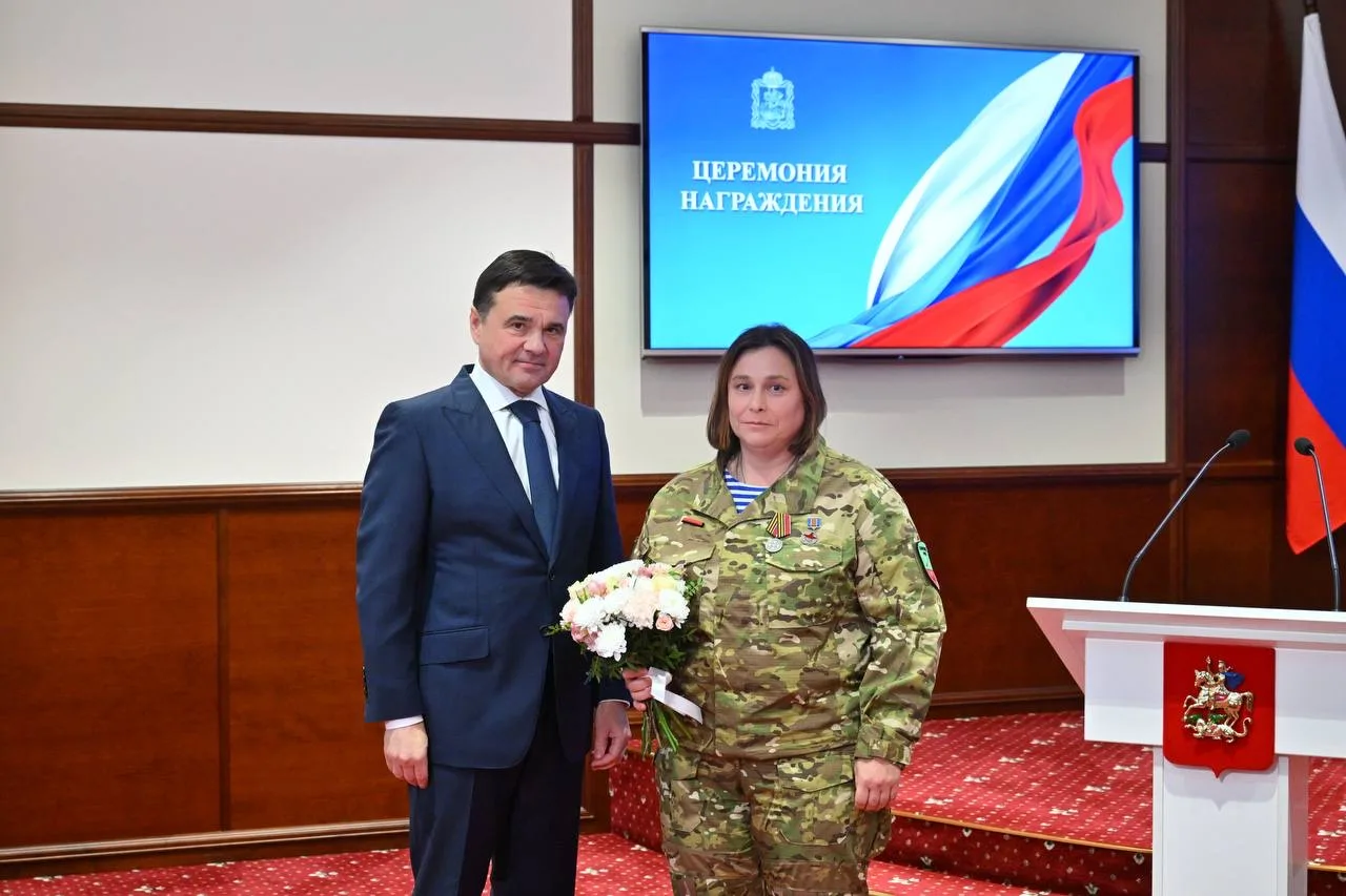 ❤️ Еще девяти семьям передал медали ордена «Родительская слава». Среди них Марина и Сергей Забелич из Сергиева Посада, у которых 5 детей — они регулярно собирают гуманитарную помощь для Донбасса. А в семье Константиновых из Домодедово Сергей — участник СВО. Вместе с женой Оксаной они воспитывают 4 детей.