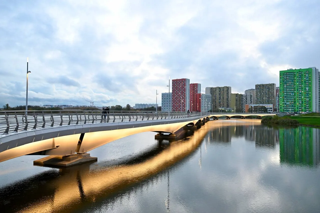 🌱 Теперь у жителей Люберец и столицы есть общее комфортное пространство для прогулок и отдыха, а путь из мкр. Зенино до метро Некрасовка стал быстрее на 15 минут. Длина моста почти 600 метров, он оборудован подсветкой, а в парке организован круговой маршрут для велосипедистов и пешеходов.