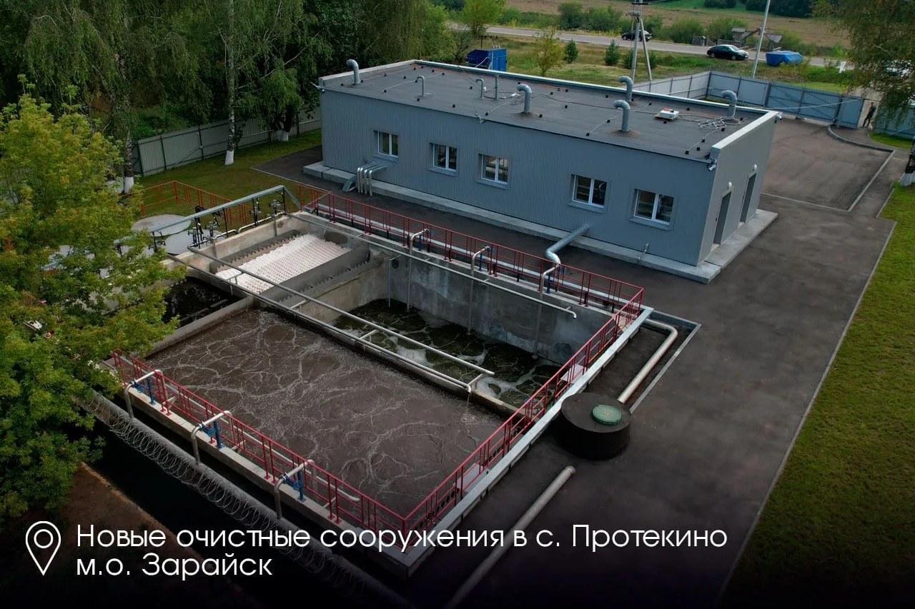 Особое внимание уделяем модернизации очистных сооружений. Не только в больших округах с огромными сооружениями, но и в малых. Один из таких округов — Зарайск, где мы завершили капремонт очистных сооружений в селе Протекино. Объект 1974 года постройки, обслуживает почти 700 жителей (это восемь МКД), школу, дом культуры и ФАП.