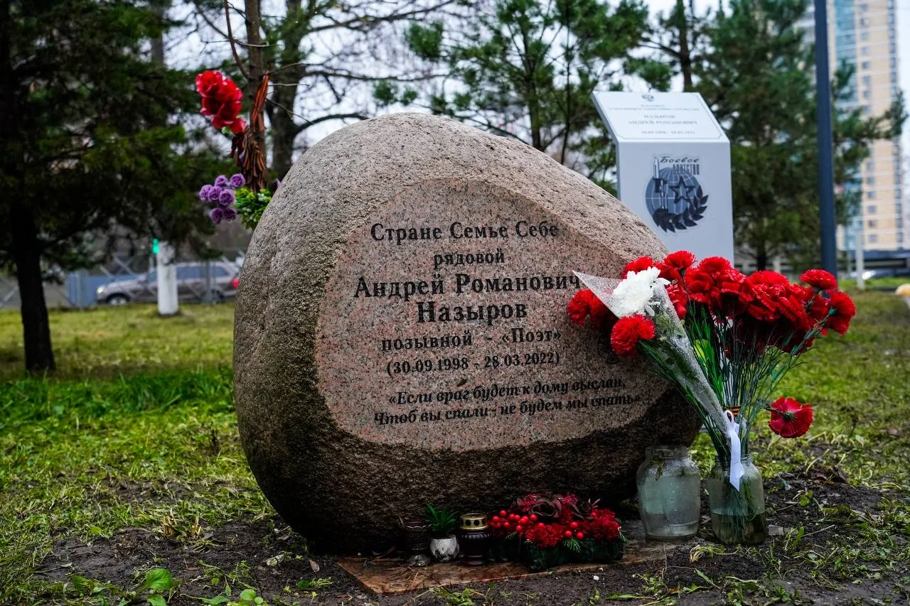 В Красногорске в честь Андрея назвали сквер рядом с Чернево-Успенским прудом. Там установлен камень, на котором высечены строки одного из стихов нашего бойца. Подмосковье помнит своих героев 🙏🏻