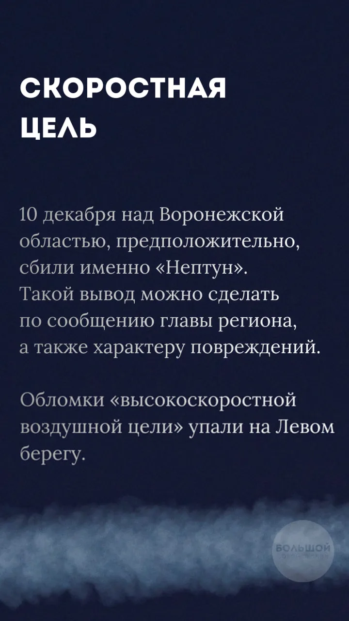 ⚡️Воронеж, вероятно, атаковали ракетой «Нептун»