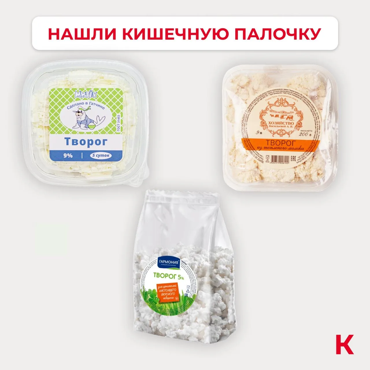 Кишечную палочку нашли в твороге «Митёк», «Гармония», «Хозяйство Васильевой А.В.».