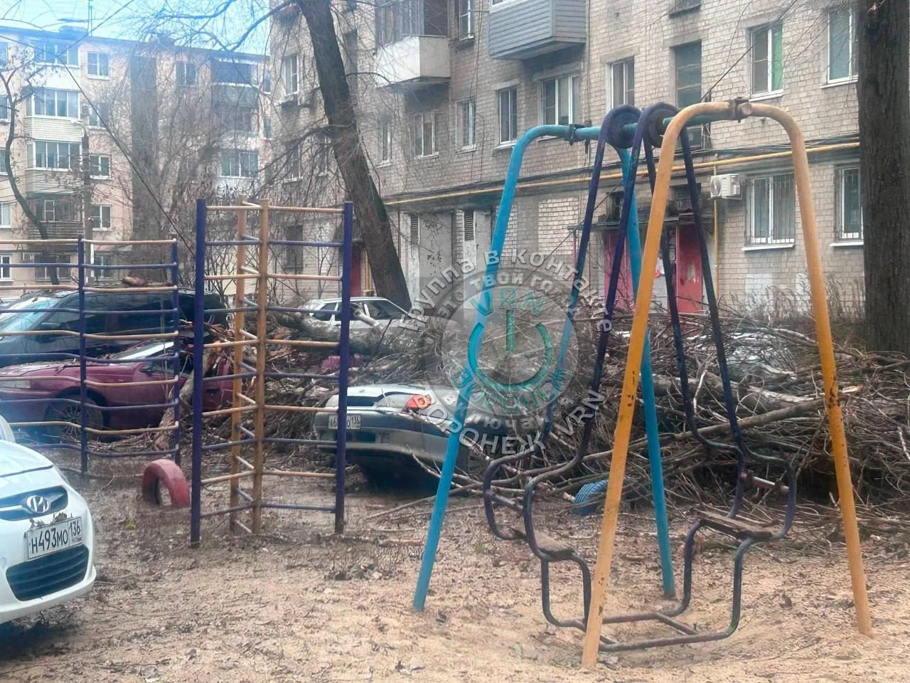 А в Бутурлиновке ветер даже повалил ёлку.