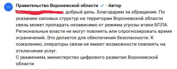 Связь пропадает независимо от режима угрозы атаки БПЛА. Это происходит по указанию силовых структур.
