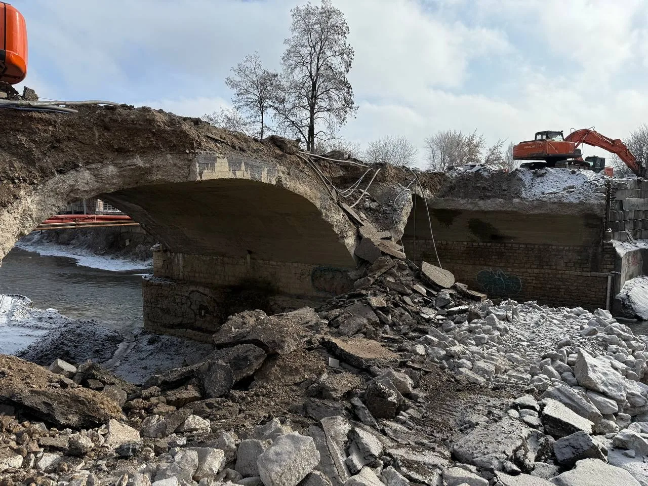 Подрядная организация ведёт подготовительные работы перед началом непосредственного демонтажа конструкций моста. Идут работы по фрезерованию асфальтового покрытия, демонтажу ограждений, разделительной полосы, тротуаров и обустройству строительного ограждения на площадке.