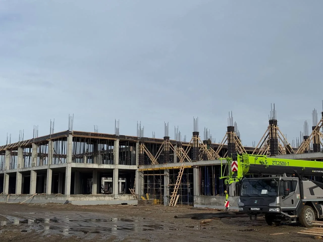 Сегодня заехал на площадку строительства новой школы. Работы важного для нашего города социального объекта идут даже в праздничные дни.