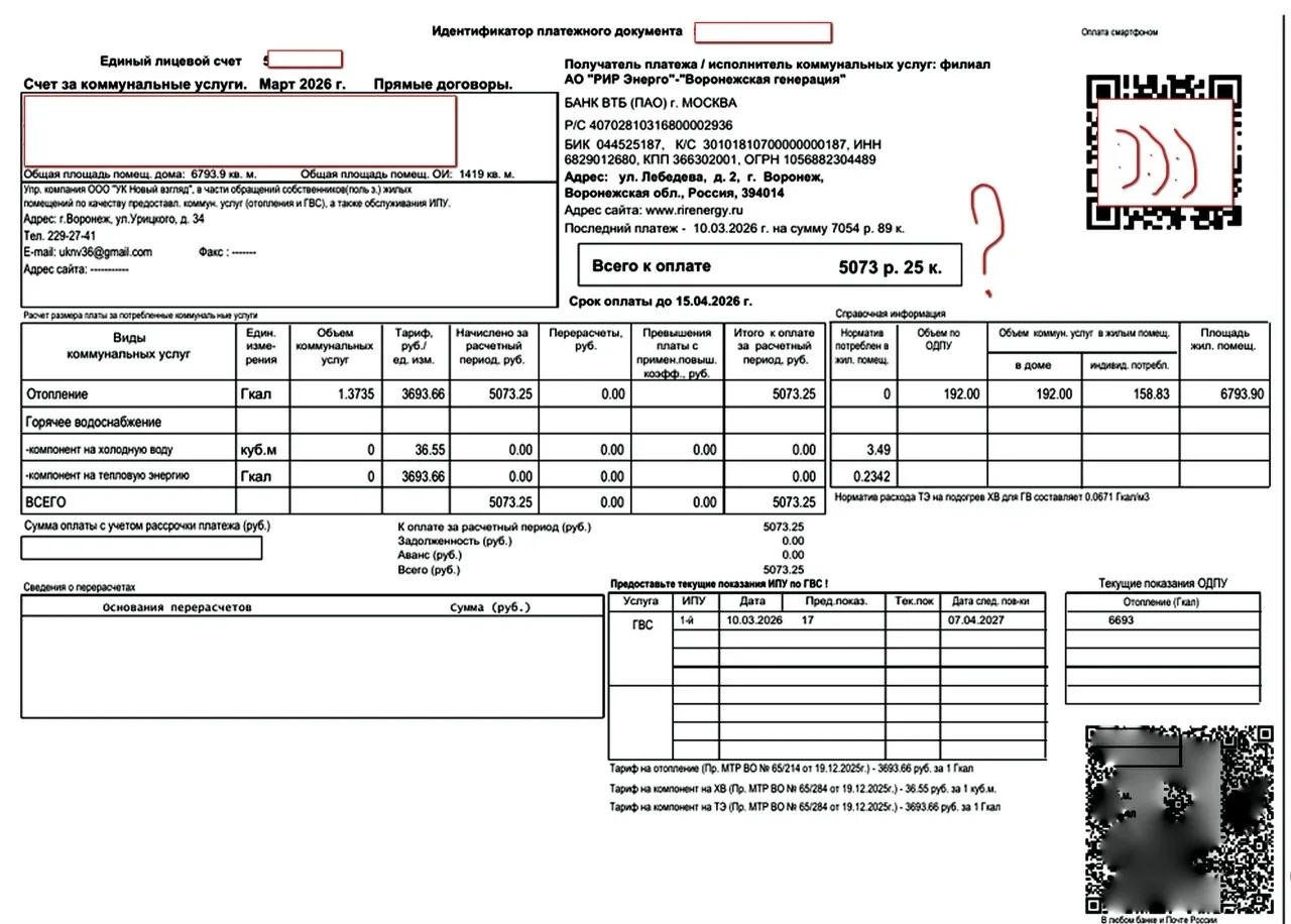 От подписчика: Пришла платёжка за отопление за Март месяц..