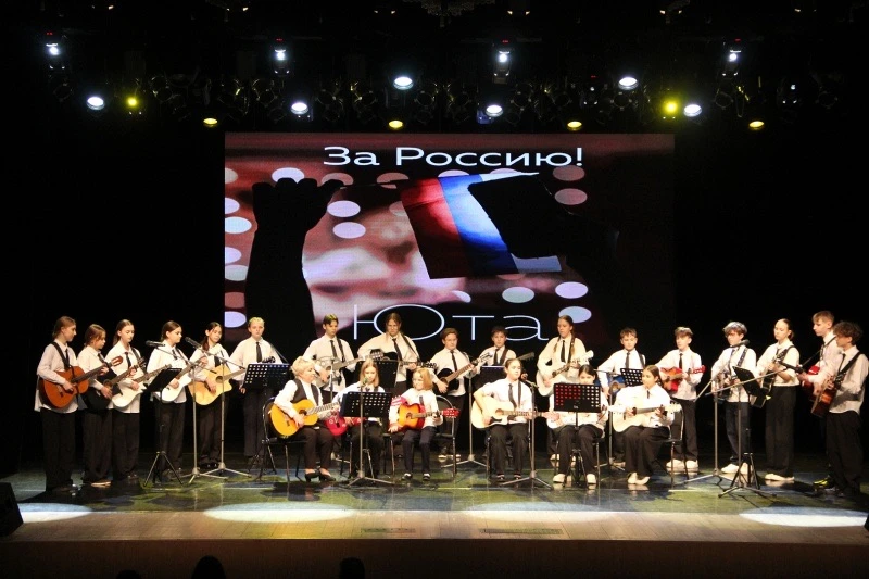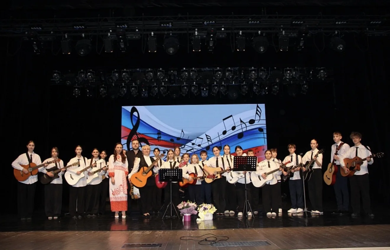 На сцене Дворца культуры выступили юные гитаристы студии игры на гитаре «Музыкальная лаборатория» под руководством Оксаны Белобородовой. Их игра, наполненная страстью и мастерством, заставляла сердца биться в унисон с ритмом Родины.