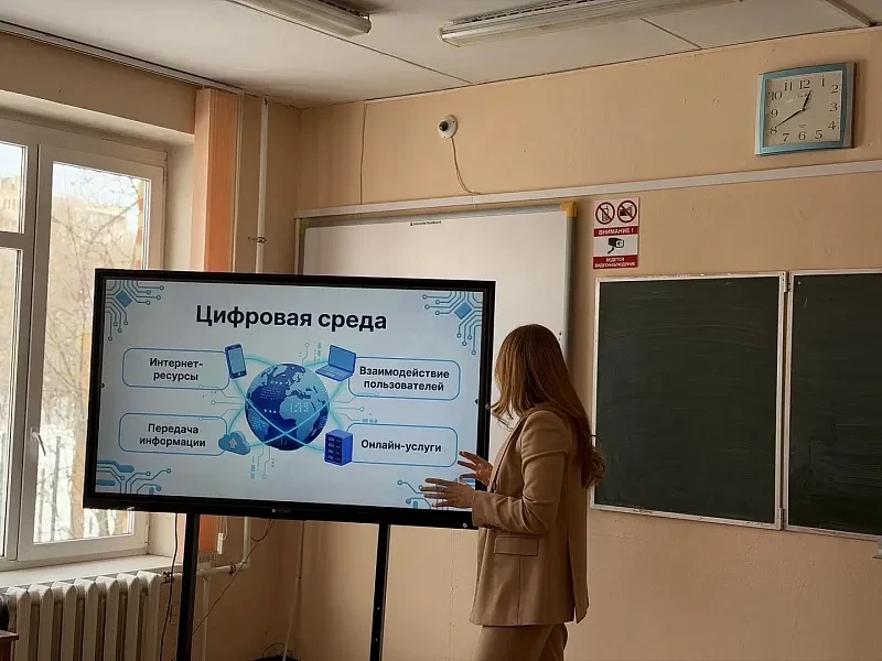 Спикером выступила Мария Степанова, координатор проекта «Цифровая Россия» в округе, раскрыв ключевые угрозы современного интернета: от фишинговых атак и вредоносного ПО до рисков в социальных сетях.