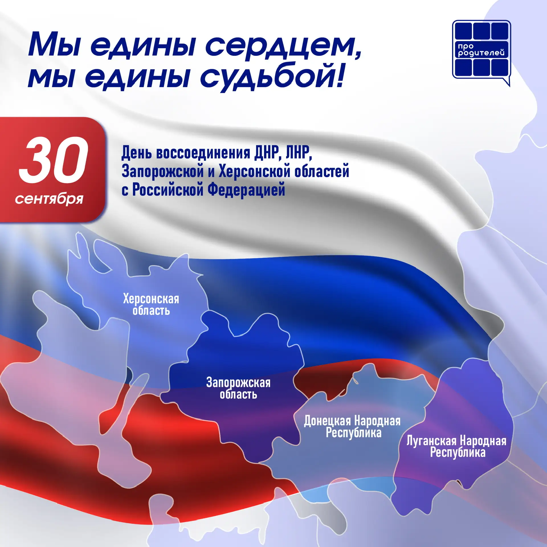 Сегодня мы отмечаем важное и историческое событие — День воссоединения Донецкой и Луганской народных республик, Запорожской и Херсонской областей с Россией. Это не просто дата в календаре, а символ объединения наших земель, наших судеб и нашей общей истории.