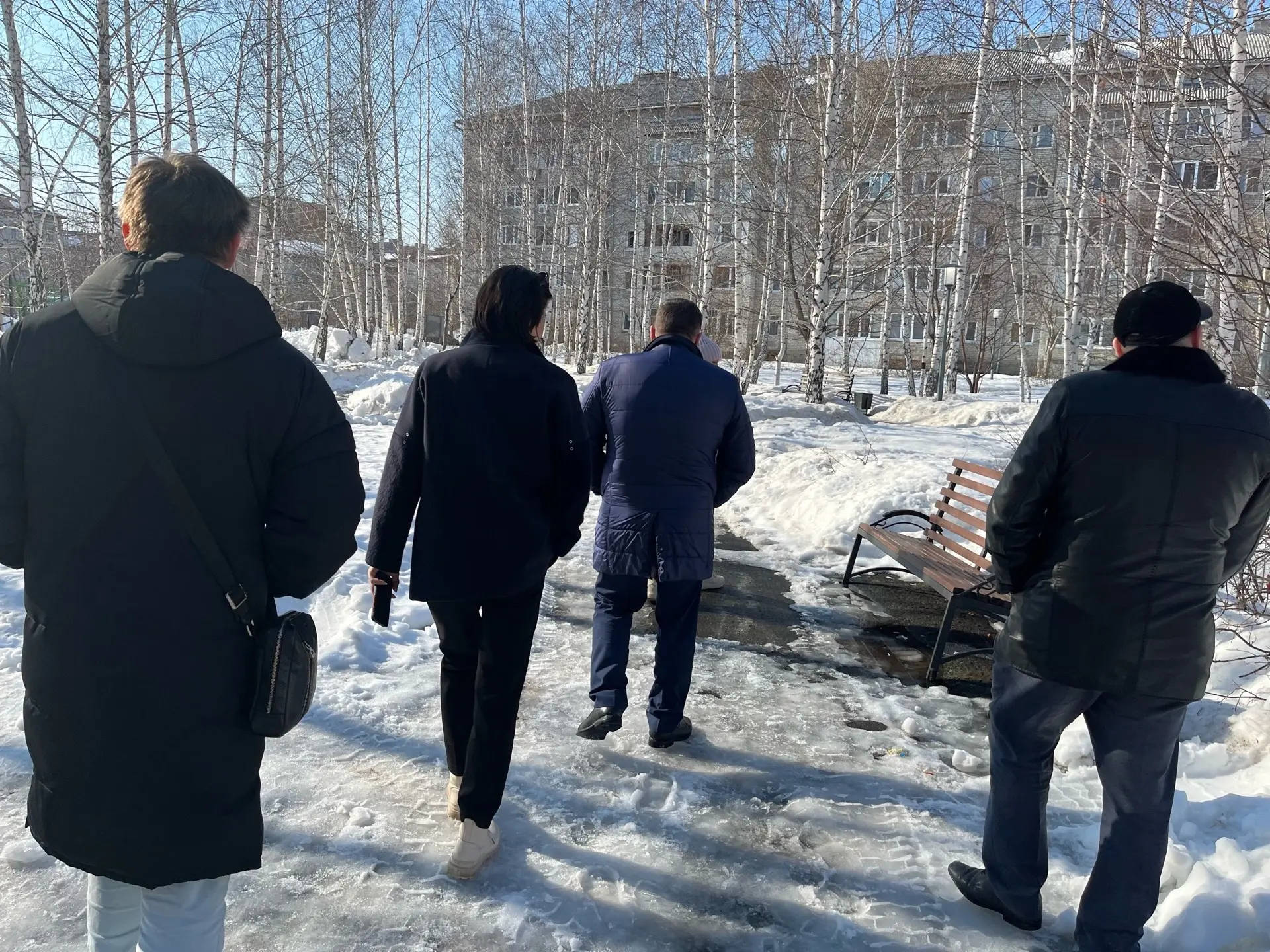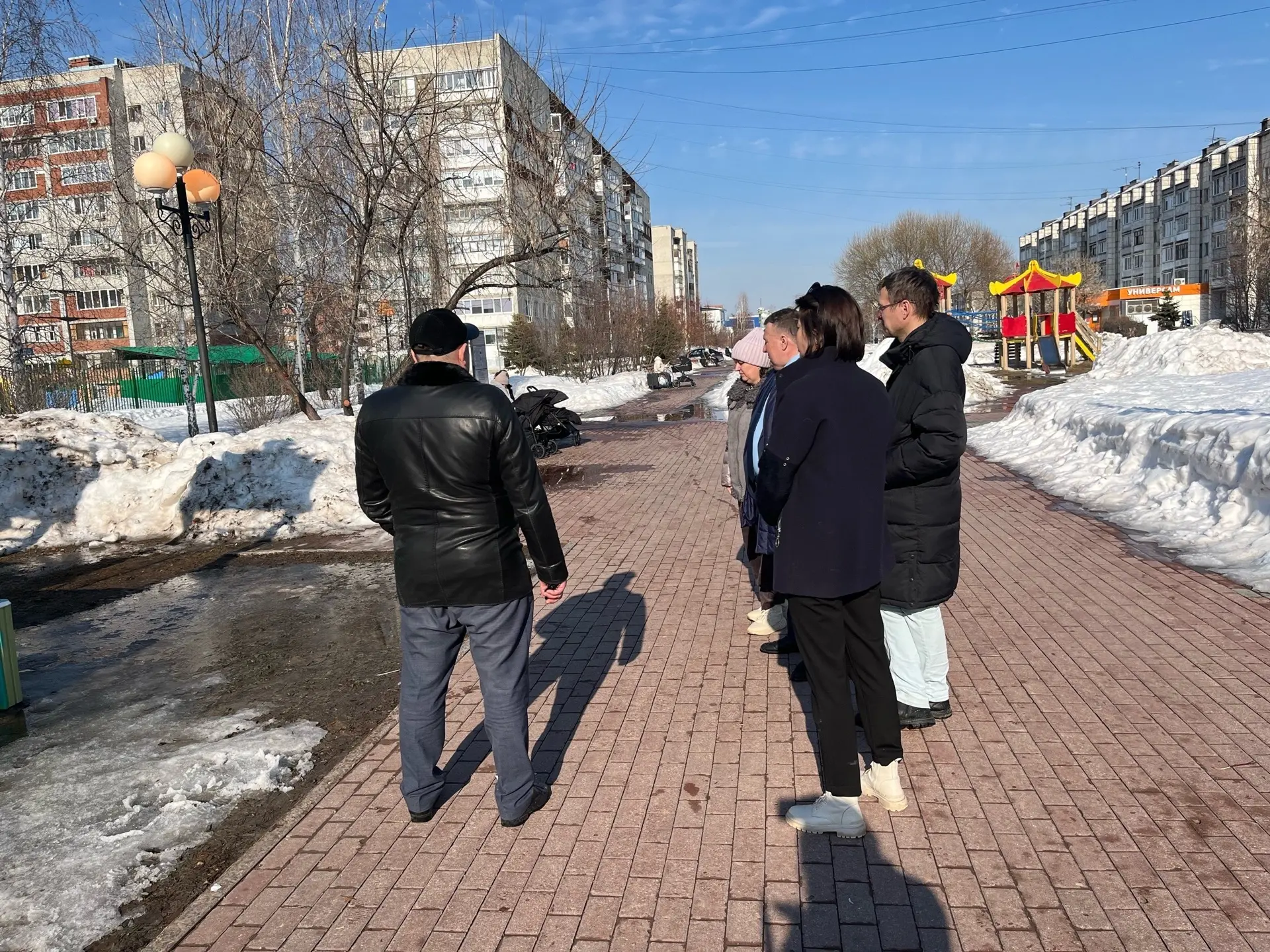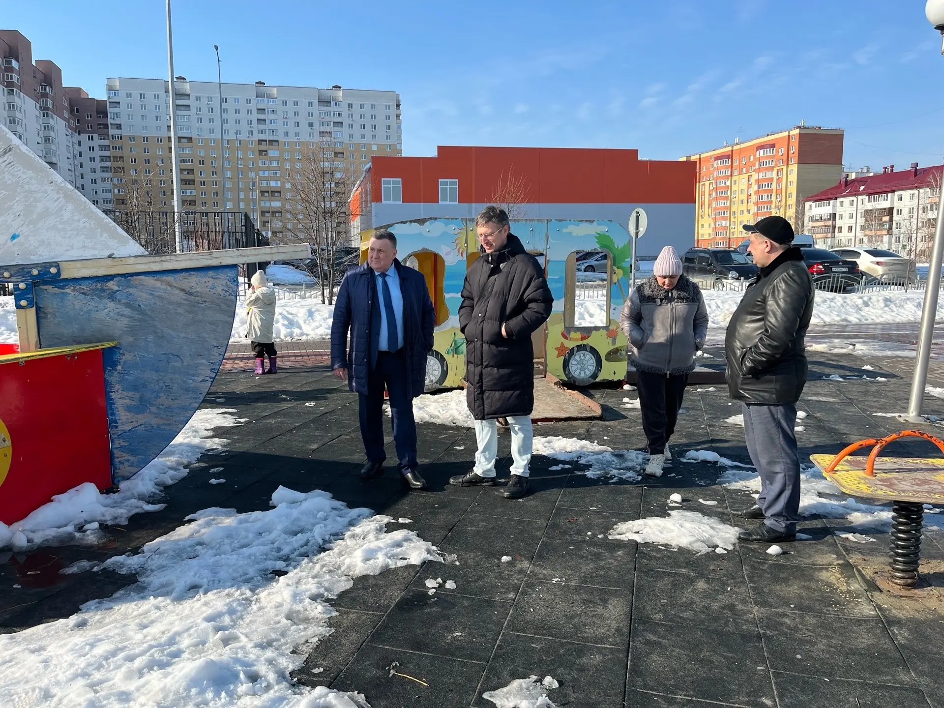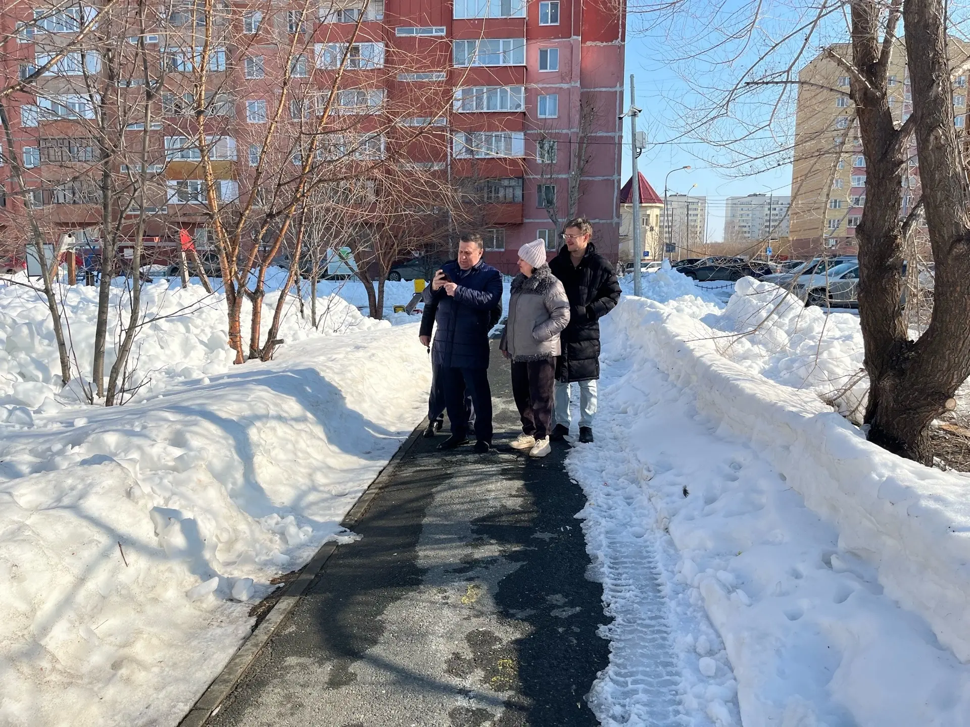 Сотрудники управы Восточного административного округа совместно с депутатом Тюменской городской думы Вадимом Максимовичем Долгих, представителем ТОС Николаем Федоровичем Борзенко и специалистами МКУ «Служба заказчика по благоустройству ВАО г. Тюмени» провели осмотр очистки снега на территориях детских и спортивных площадок округа.