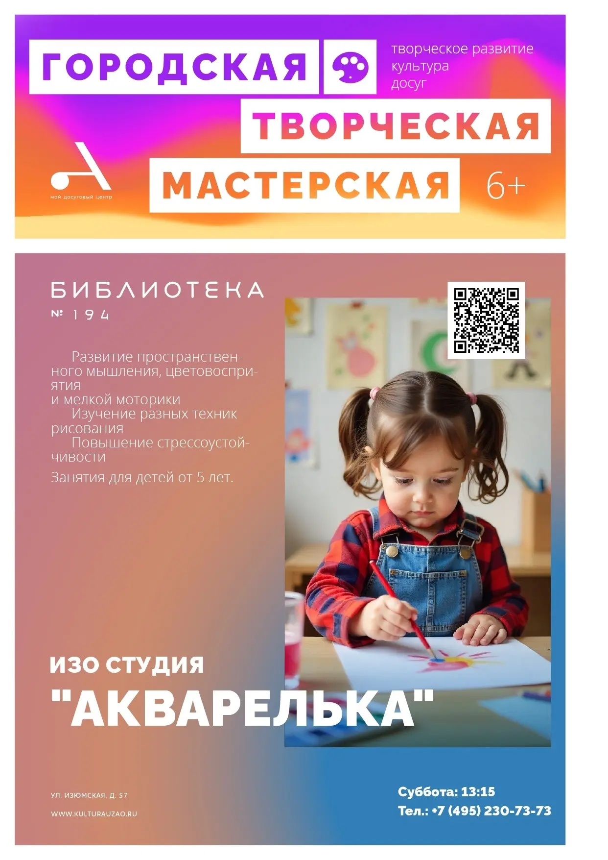 Библиотека №194 приглашает юных художников в изо-студию "Акварелька". Курс даёт базовые знания, на основе которых ребёнок сам сможет нарисовать свои картины. Занятия проходят каждую субботу в 13:15 🗓🕐 по адресу: ул. Изюмская, д. 57 📍🏫