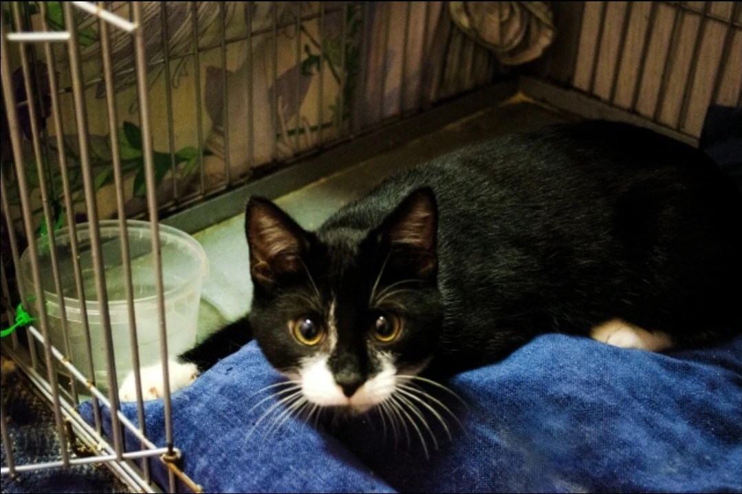 Котик был пойман в частном секторе, где мерз и голодал вместе со своими братьями и сестрами.