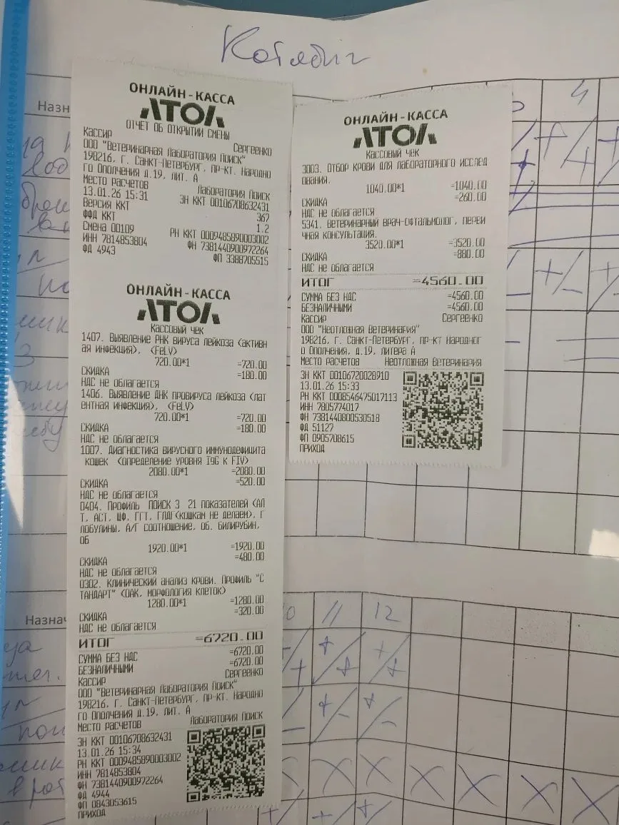 За прием 3х котов, анализы, кастрацию мы должны 22253р. !!!