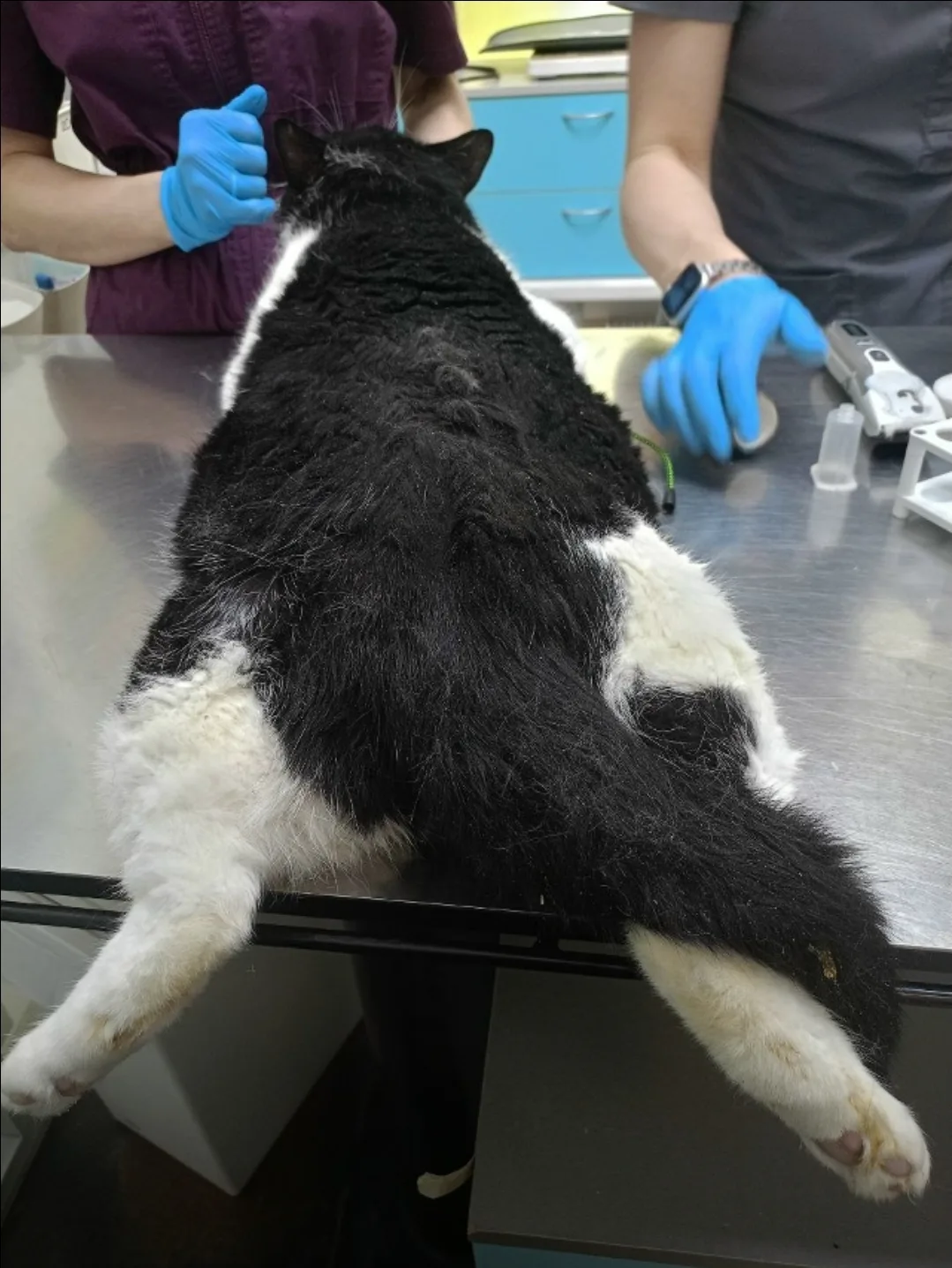 Наш новенький котик Понч очень толстый. ему надо срочно сдать кровь на инфекции, чтобы можно было выпустить из клетки. Ну и осмотреть рот, проверить на диабет.