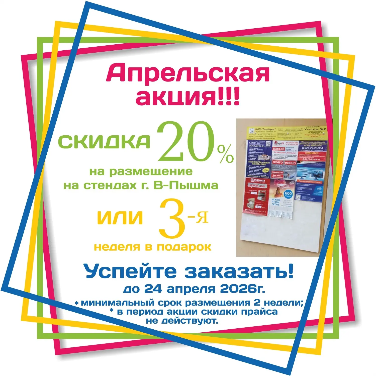 Скидка 20% на размещение на стендах или 3-я неделя в подарок.