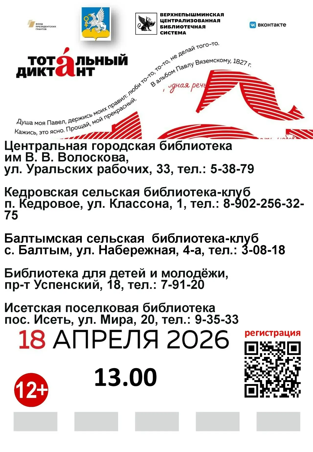 18 апреля вместе со всей страной напишем текст Алексея Варламова — ежегодная акция объединяет всех, кто любит русский язык и хочет проверить себя.