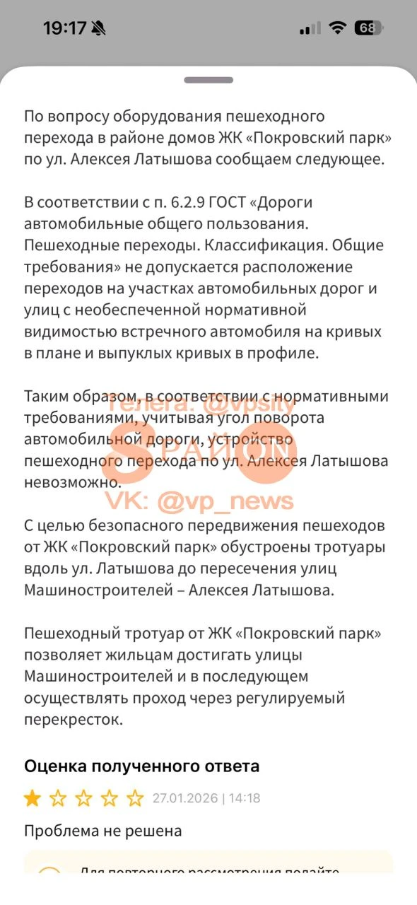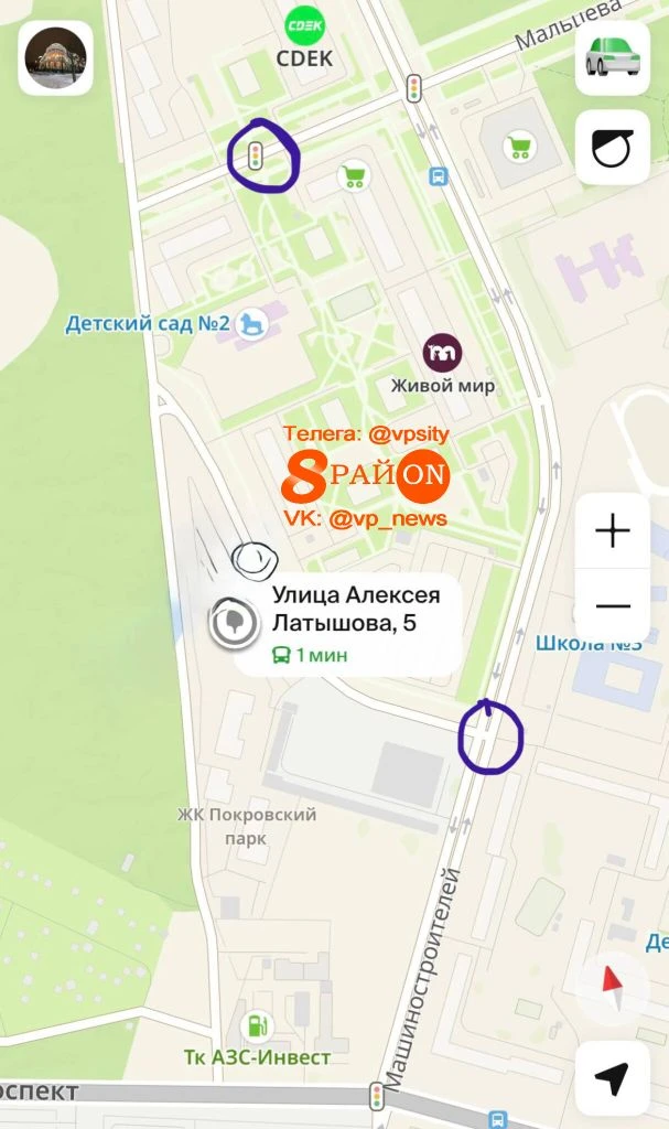 Соотвественно все жители которые живут в ЖК Покровском пересекают дорогу в неположенном месте. А администрация предлагает только обходить весь Рифей для того чтоб попасть в нужную точку.