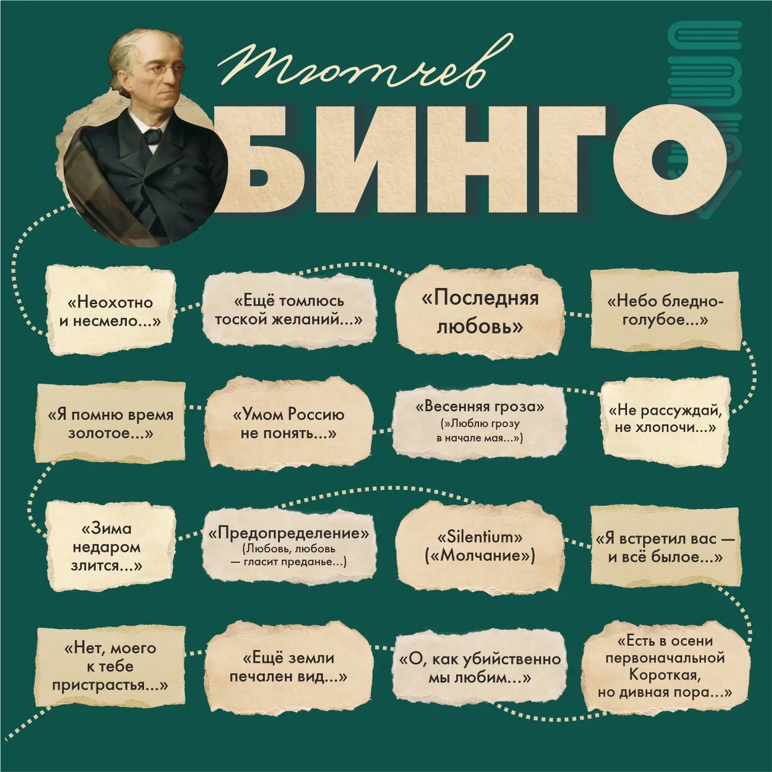 Сегодня отмечаем день рождения Фёдора Ивановича Тютчева — и по этому поводу запускаем поэтическое бинго!