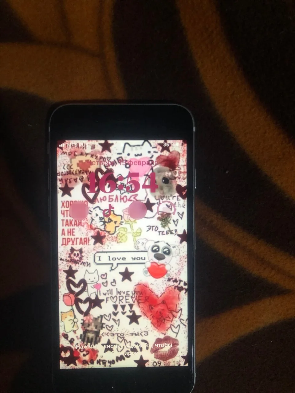 потеряли айфон xr на обоях гном, чехол серо-розовый с двумя ангелами