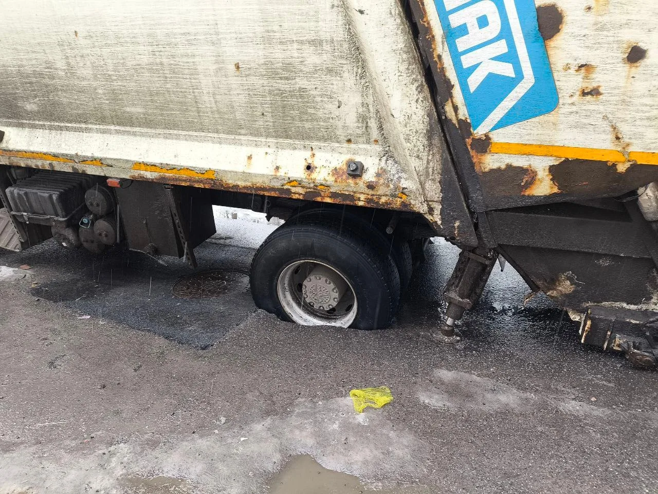 На Товарищеского/Подвойского мусоровоз провалился в асфальт
