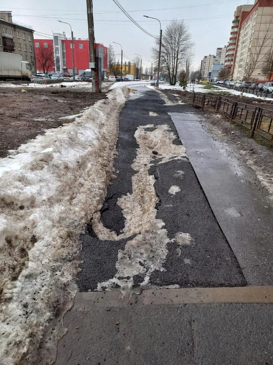 Новый асфальт растаял в Рыбацком