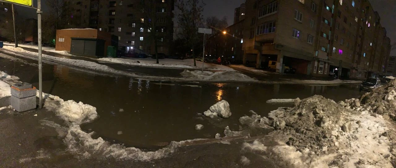 Неподалеку от метро Дыбенко прорвало трубу.